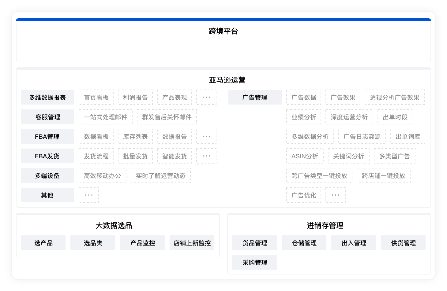 枫坛森ERP是蕲春县枫坛森百货行开发的一款新产品,该ERP是深度连接了电商平台端、物流端和商家端,为跨境电商卖家提供选品采集、产品刊登、订单及物流管理、客服管理、销售渠道拓展等服务,助力跨境电商卖家降低人力成本、提高管理效益。